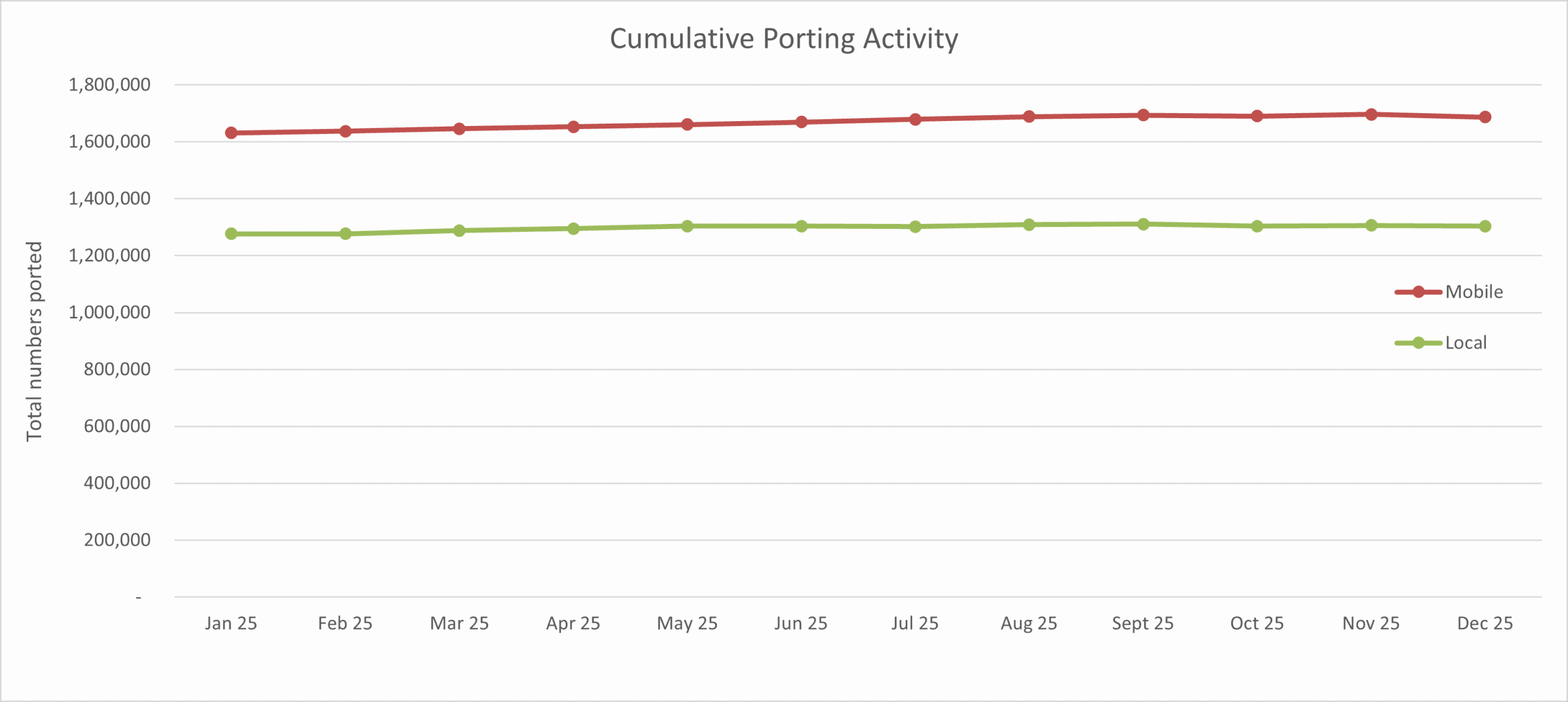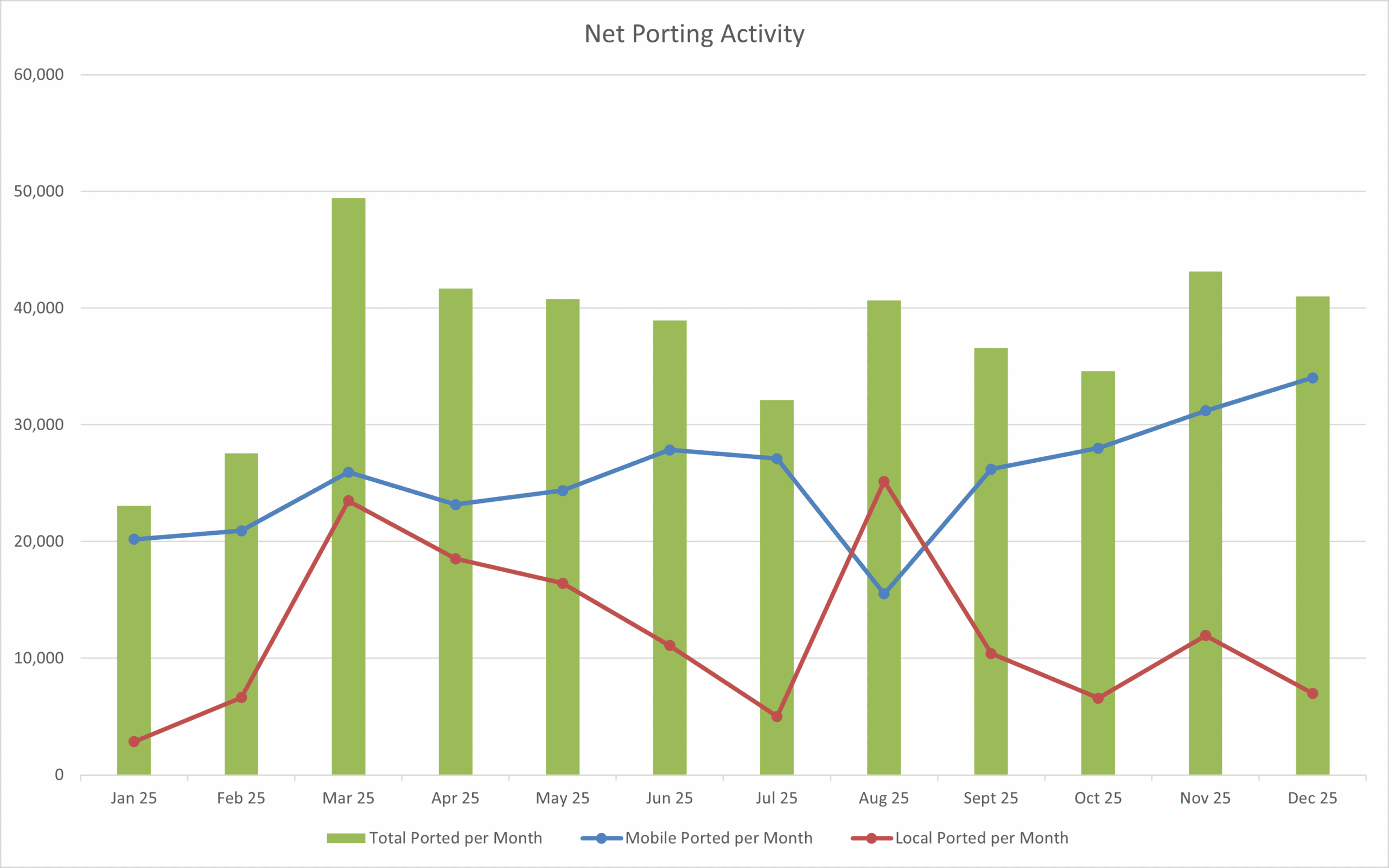 This is a count of all the mobile and local ports that have occurred during each month, including of previously ported numbers.